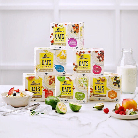 Harraways have also repackaged their single serve convenience oats, introducing a space saving box and compostable sachets.
