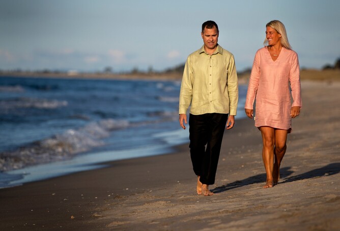 In their search for clothes that offered both comfort and protection in the sun, Clay Matthews and Hayley Moyle sourced and tested fabrics from around the world to find materials for a natural, durable, and UV-protective clothing range.